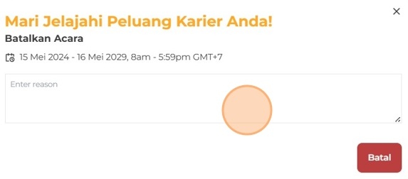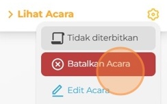 Klik Batalkan Acara jika Anda ingin membatalkan acara yang telah diajukan, kemudian berikan alasan pembatalan dan klik Batal untuk melanjutkan.