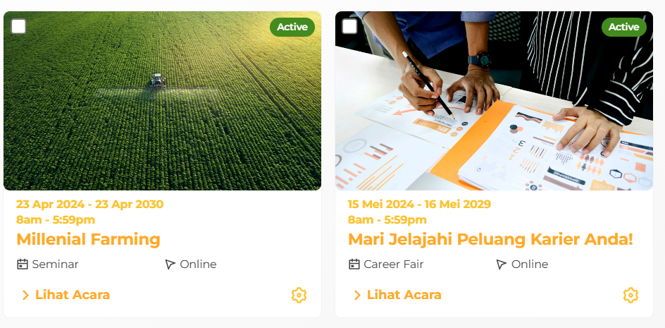 4. Anda juga dapat melihat daftar semua acara yang berstatus Menunggu Persetujuan maupun Aktif di halaman ini.