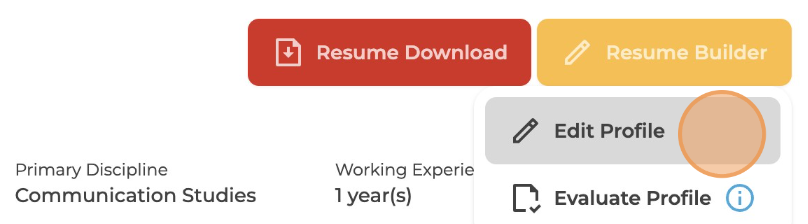 Pada profil Anda, klik kembali Resume Builder, kemudian pilih Edit Profile.