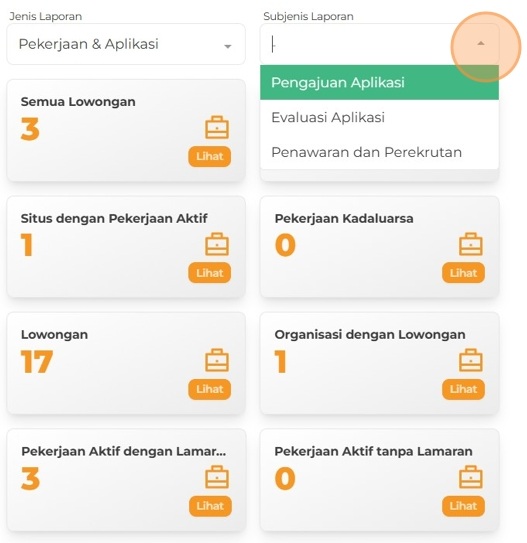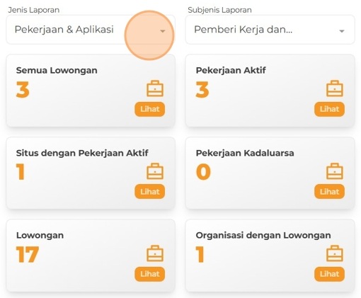 3. Pilih Jenis Laporan dan pilih Subjenis Laporan untuk melihat ringkasan data numerik yang ingin ditinjau. Klik Lihat untuk mengakses daftar atau informasi terperinci dari masing-masing tab.