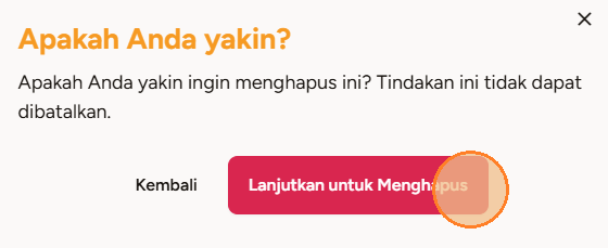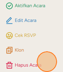 Klik Hapus Acara. Klik Lanjutkan untuk Menghapus untuk mengonfirmasi. Acara akan dihapus secara permanen dari sistem.