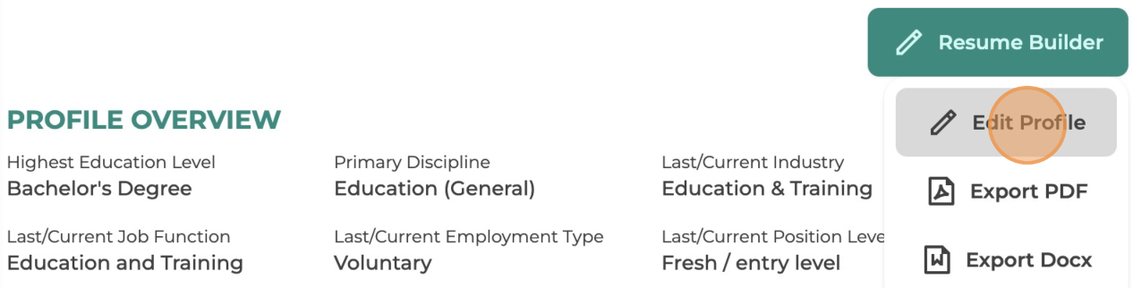 Profile Information: Ringkasan Profil Anda sangat penting untuk mendapatkan kesempatan wawancara. Tulislah minimal satu paragraf mengenai latar belakang, minat, pengalaman saat ini, dan tujuan karier Anda. Gunakan contoh di bawah sebagai panduan. Jangan biarkan bagian ini kosong, karena hal ini sangat memengaruhi cara perusahaan menilai profil Anda.