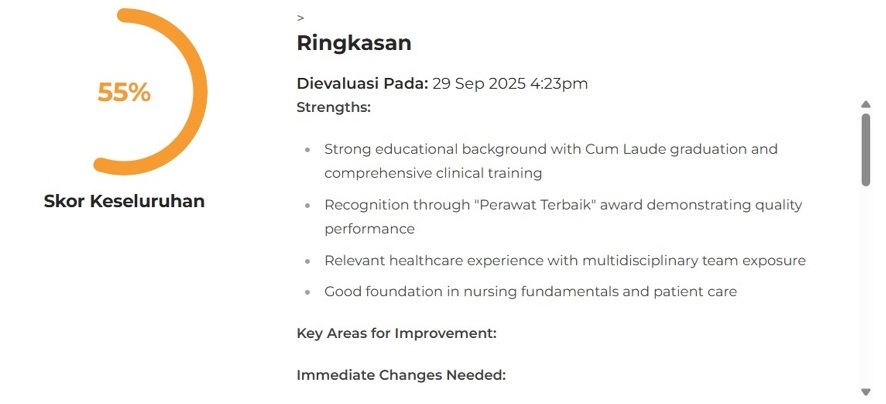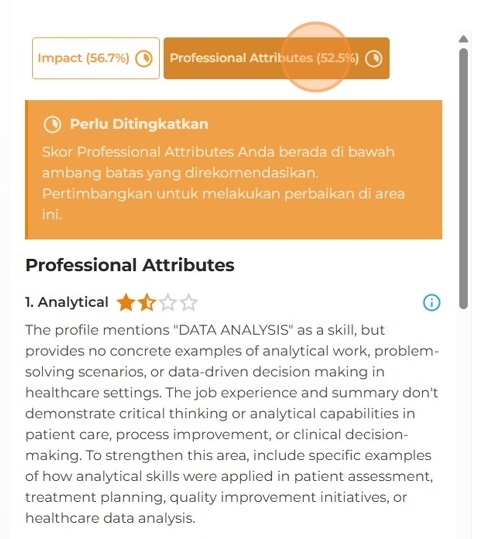 3. Baca ringkasan, nilai Impact dan Professional Attributes, serta catatan yang tersedia untuk memahami kelebihan Anda dan area yang masih bisa dikembangkan.