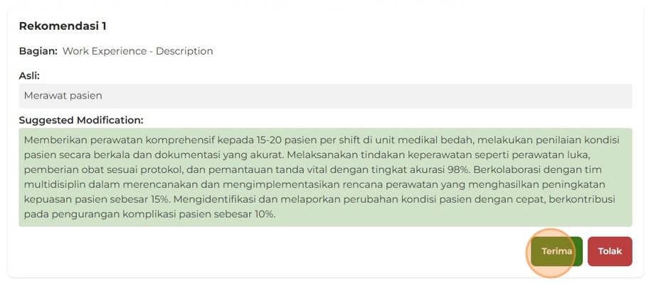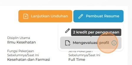 Atau Anda dapat juga mengakses fitur ini dari bagian Pembuat Resume, lalu pilih Mengevaluasi Profil.