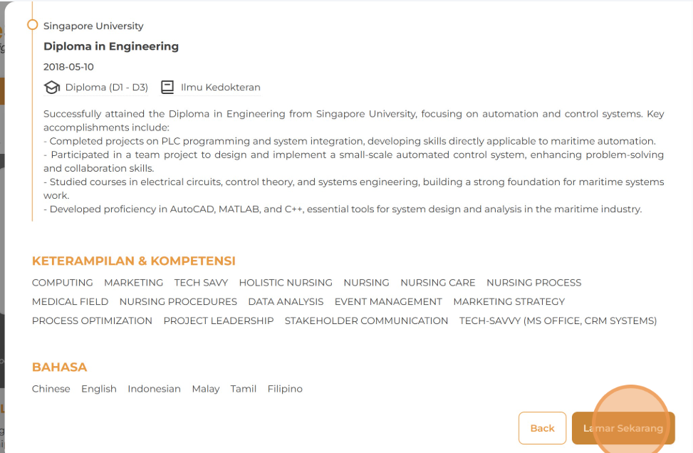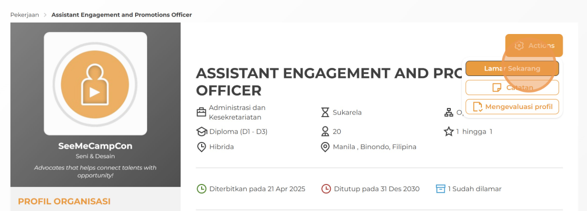 5. Jika posisi tersebut sesuai dengan keterampilan dan minat Anda, klik Lamar Sekarang untuk melanjutkan proses lamaran.