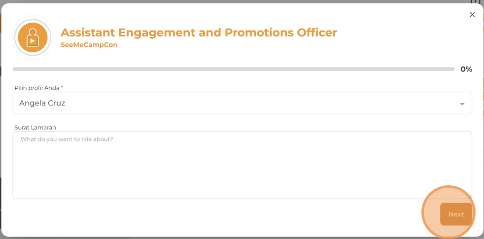6. Tinjau profil Anda, tulis surat lamaran jika diperlukan, klik Next, lalu klik Lamar Sekarang untuk menyelesaikan proses lamaran.