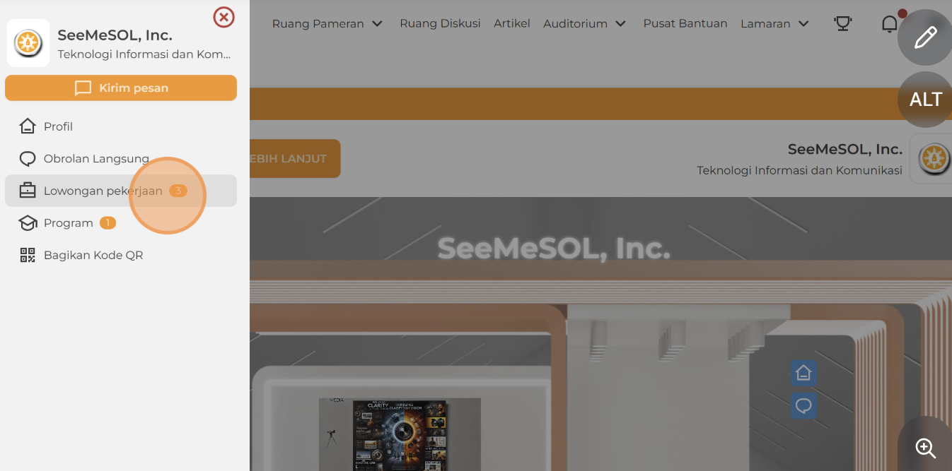 4. Anda juga dapat mengakses lowongan pekerjaan melalui booth organisasi. Klik Info Lebih Lanjut, lalu pilih Lowongan Pekerjaan untuk melihat peluang yang tersedia.