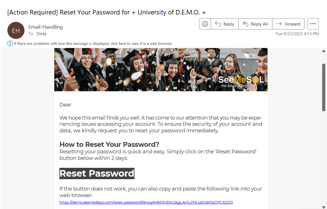 4. Anda akan menerima email yang berisi petunjuk untuk mengatur ulang kata sandi. Klik tautan Reset Kata Sandi/Password, masukkan kata sandi baru Anda, konfirmasi ulang, lalu klik Kirim. Pastikan Anda mengikuti tips kata sandi yang disediakan.