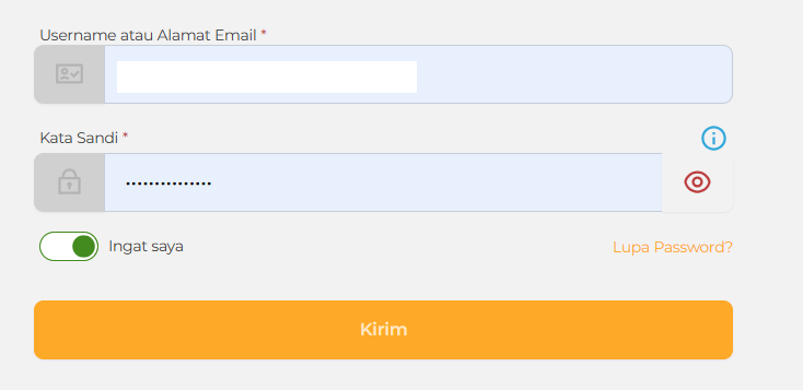 2. Masukkan nama pengguna atau email terdaftar beserta kata sandi Anda, lalu klik Kirim.