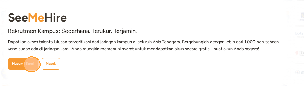 2. Anda akan diarahkan ke halaman utama SeeMeHire. Klik tombol Hubungi Kami untuk mengisi formulir.