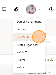 2. Setelah berhasil login, Anda akan diarahkan ke Dasbor. Arahkan kursor ke ikon Profil untuk membuka menu, lalu klik SeeMeHire.