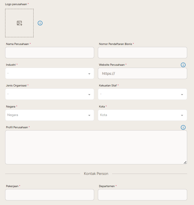 3. Jika ingin menggunakan profil employer yang sudah ada, pilih melalui dropdown Pilih Profil Perusahaan yang Ada.