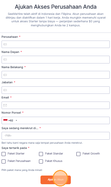 2. Anda akan diarahkan ke halaman pendaftaran akun SeeMeHire.