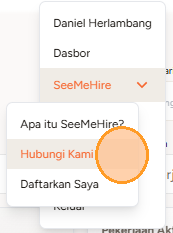 1. Jika Anda tertarik dengan SeeMeHire dan ingin berdiskusi lebih lanjut, pilih Hubungi Kami melalui menu dropdown SeeMeHire.