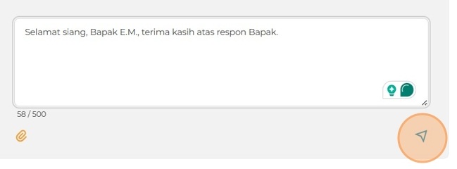 4. Untuk membalas, ketik pesan Anda di kotak pesan, lalu tekan Enter atau klik ikon panah untuk mengirim. Anda juga dapat melampirkan file atau dokumen jika diperlukan.
