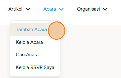 2. Setelah berhasil login, Anda akan diarahkan ke Dasbor. Arahkan kursor ke menu Acara untuk menampilkan opsi, lalu pilih Tambah Acara untuk membuatnya.