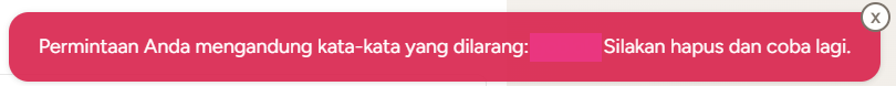 Jika terdapat kata yang mengandung profanity, sistem akan mendeteksinya dan proses tidak dapat dilanjutkan sampai kata tersebut dihapus.