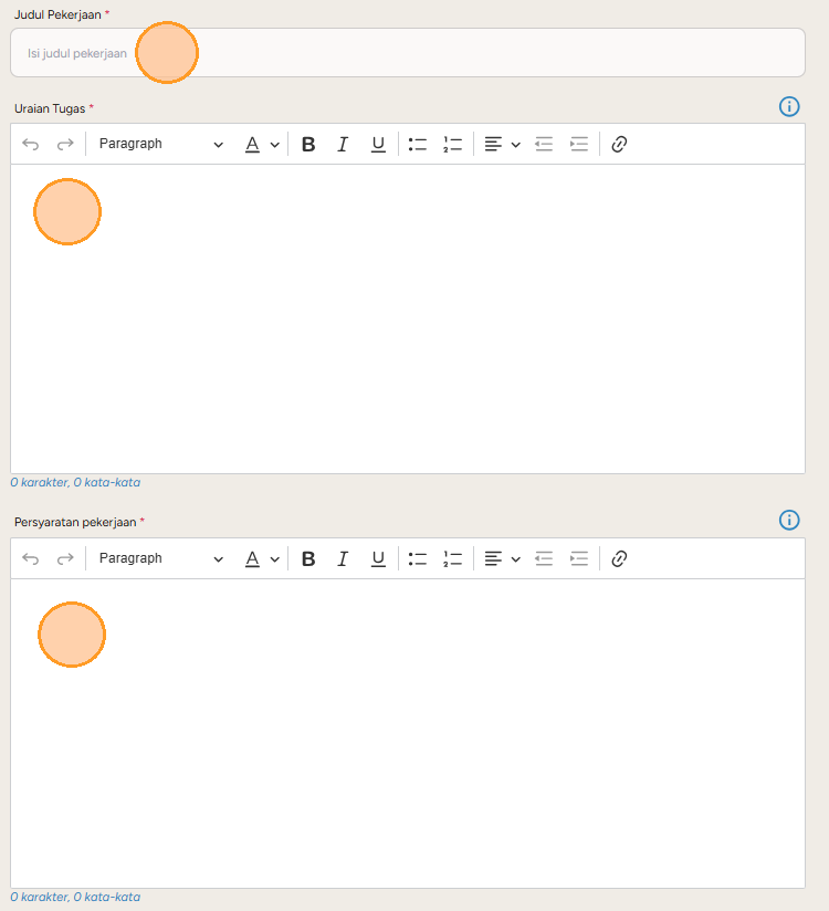 4. Tulis Judul Pekerjaan dan masukkan Uraian Tugas serta Persyaratan Pekerjaan.