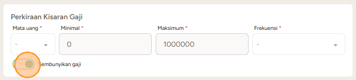 8. Masukkan Perkiraan Kisaran Gaji dan gunakan opsi toggle untuk menyembunyikan atau menampilkan gaji pada lowongan.