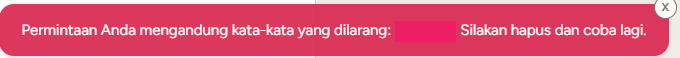 Jika Anda tidak sengaja memasukkan kata-kata kasar, sistem akan mendeteksinya, dan permintaan tidak akan diproses sampai kata yang tidak pantas tersebut dihapus dan Anda mencoba lagi.