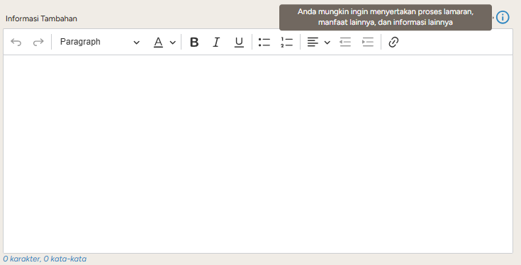 9. Anda juga dapat menambahkan Informasi Tambahan seperti proses lamaran, benefit, dan detail relevan lainnya.