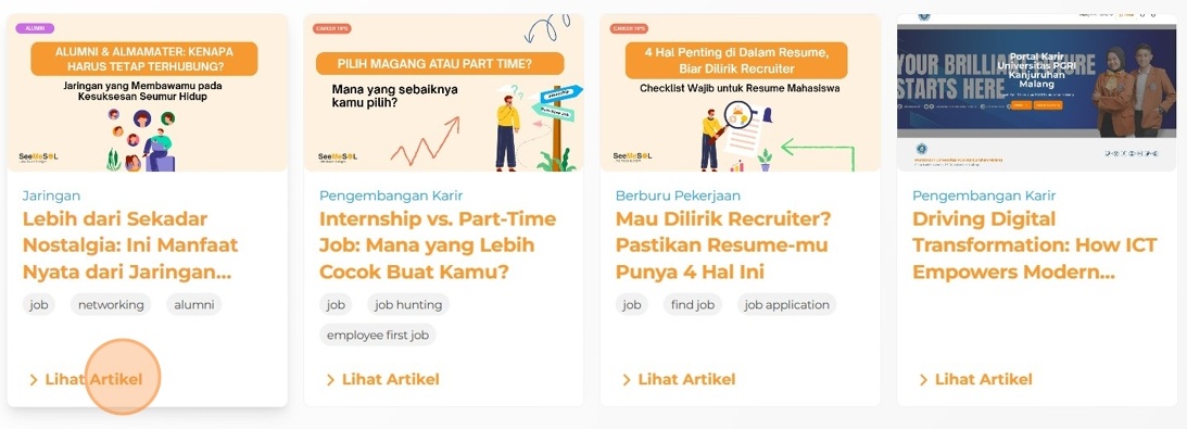Halaman Artikel Anda berfungsi sebagai etalase publik untuk portal karier Anda. Halaman ini dapat dilihat oleh berbagain kalangan, mulai dari siswa yang mencari panduan karier dan kiat-kiat wawancara, hingga alumni yang ingin terhubung kembali dengan ...