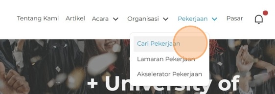 2. Setelah berhasil masuk, Anda akan diarahkan ke dasbor. Arahkan kursor ke menu Pekerjaan untuk membuka pilihan, lalu klik Cari Pekerjaan.