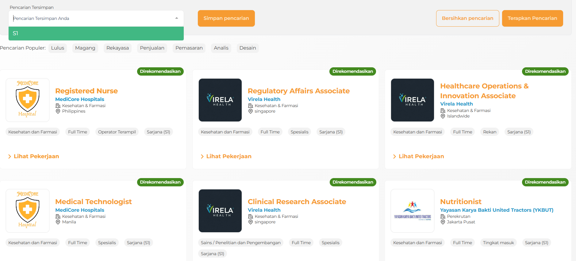3. Untuk mencari pekerjaan yang spesifik, masukkan kata kunci di kotak pencarian atau tentukan lokasi, lalu klik Terapkan Pencarian.