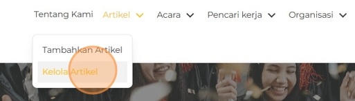 2. Setelah berhasil login, Anda akan diarahkan ke dashboard. Arahkan kursor ke menu Artikel, lalu pilih Kelola Artikel.