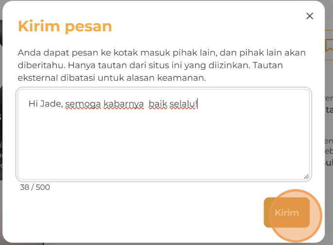 5. Ketik pesan Anda di kotak teks, lalu klik Kirim.